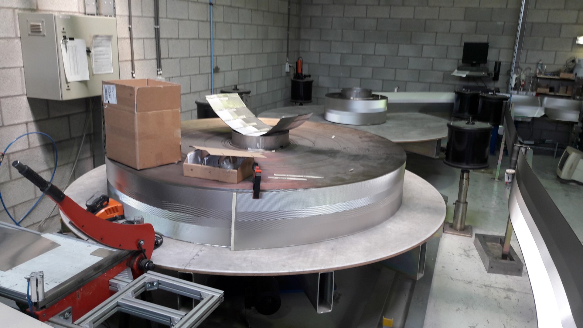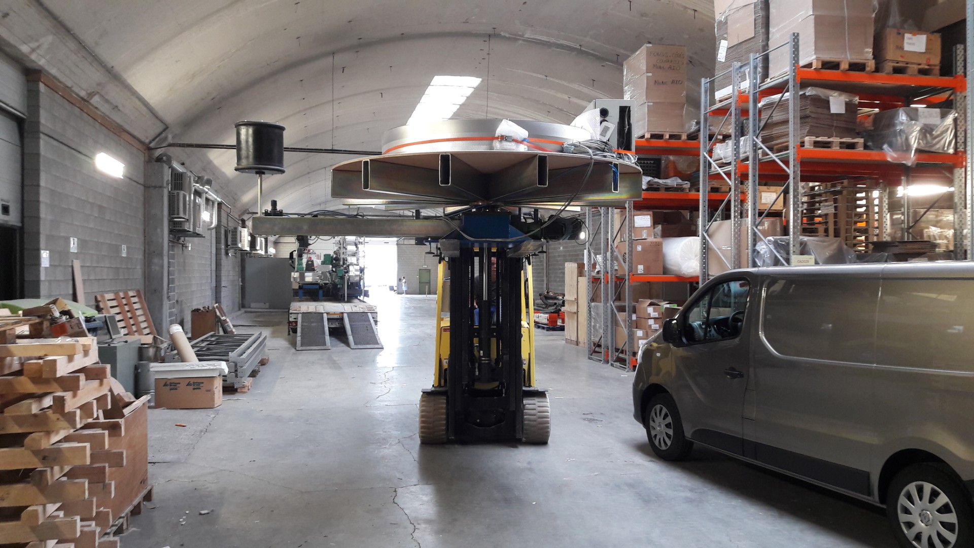 Le dispositif de production étant à la fois unique et sensible, il fallait assurer le maintien et la stabilité de l’assemblage pendant le transport mais aussi s’assurer que la position de tous les éléments soit identique. Un cadre métallique de 6x1,5m a ainsi été placé tout autour du dispositif pour le rigidifier. Un géomètre est également intervenu pour prendre différents points de référence sur l’équipement et ainsi pouvoir les réaligner une fois la machine réinstallée.