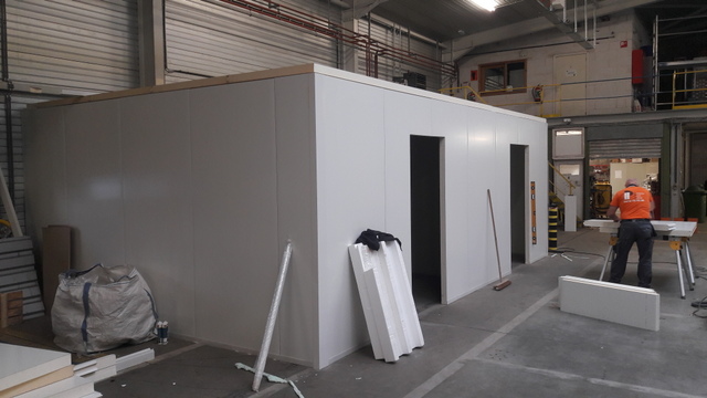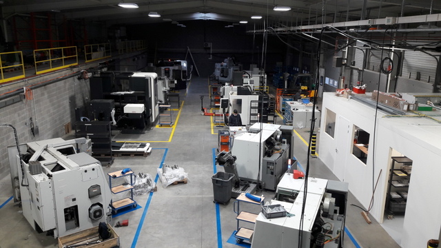 Cet ancien hall de stockage devait rapidement être transformé en y ajoutant toutes les énergies nécessaires au fonctionnement d’un atelier d’usinage (Electricité de puissance, air comprimé, un bon éclairage, chauffage et des bureaux pouvant accueillir la métrologie et 4 postes de travail).