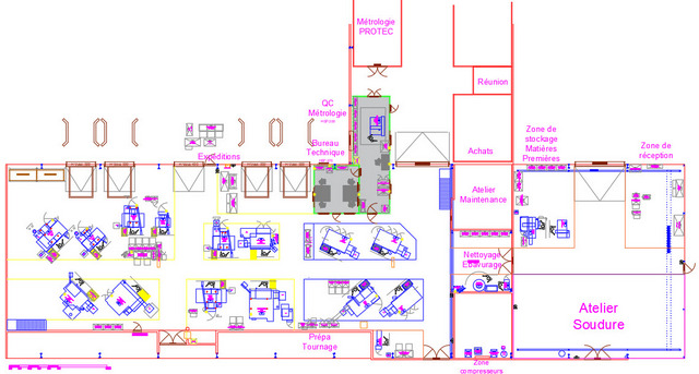 Le parc machines Mecatech et JD’C, l’atelier soudure ainsi que tout le mobilier d’atelier ont été repérés, mesurés et des plans d’aménagement ont été réalisés à l’échelle. Cette étape était nécessaire afin de valider la faisabilité, préparer le déménagement et optimiser l’espace en intégrant des investissements futurs.