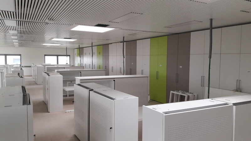 En mars 2017, l’entreprise a pris ses quartiers alors que les travaux d’aménagement du bâtiment étaient encore à un stade de finition. Une bonne coordination avec tous les prestataires était indispensable, ne fût-ce que pour permettre le déchargement du matériel et sa mise en place dans le bâtiment (au milieu du chantier).
