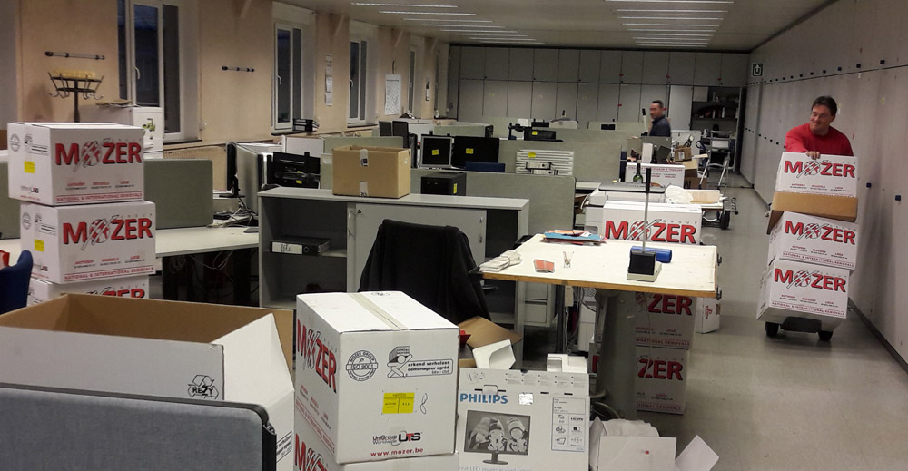 Chaque employé avait reçu le nombre de cartons nécessaires au transfert de son poste de travail. A lui de les remplir, étiqueter et préparer pour ensuite passer la main aux déménageurs.